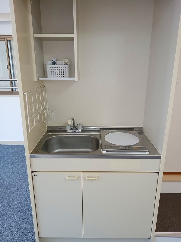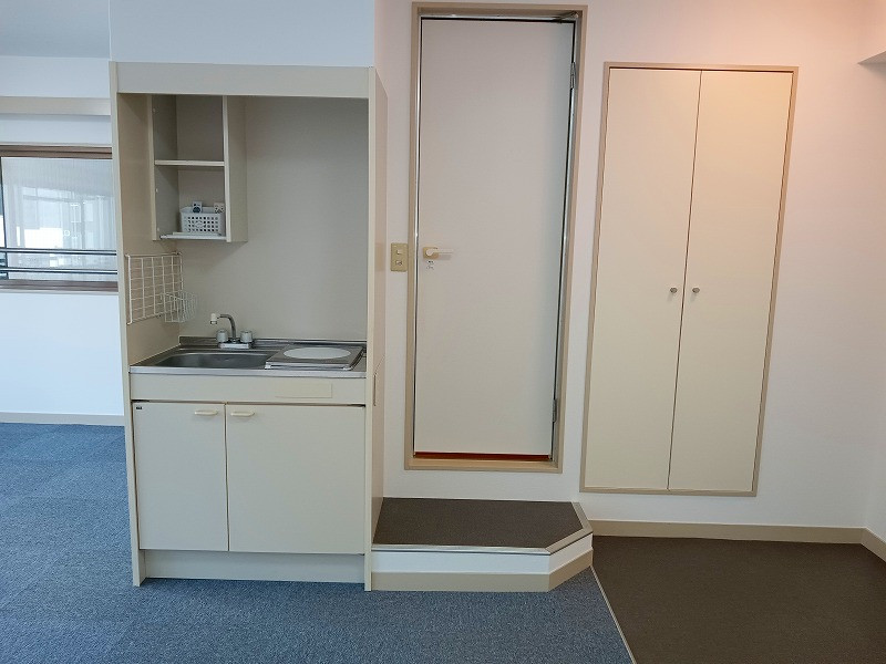 エレベータ、モニター付インターホン、ミニキッチン(IHヒーター)、3点ユニットバス、室内洗濯機置場、エアコン1基、床タイルカーペット、インナーサッシ *24時間駆けつけサービス:11,000円(税込)/2年間、*照明器具:残置物 *鍵交換費18,000円(別途消費税) *更新事務手数料:16,500円(税込) *短期解約違約金有【1年以内/賃料2ヶ月分、2年以内/同1ヶ月分】 *室内禁煙 *建物内駐輪場・ゴミ置き場はありません |